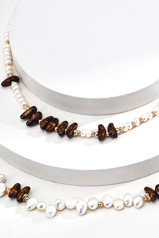 White Shell Beaded Bracelet Necklace Vintage Gold