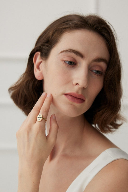 Black Enamel Gothic Ring Vintage Royal Court Style