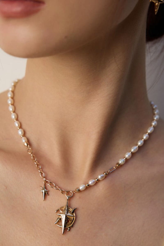 Celestial Necklace Moon Star Pearl Beaded Jewelry